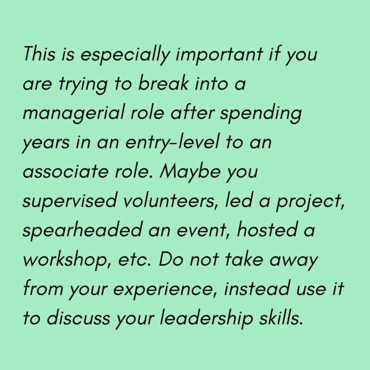 Insight: Even if you do not have experience with employees directly reporting to you, there is a way you can discuss your leadership experiences.